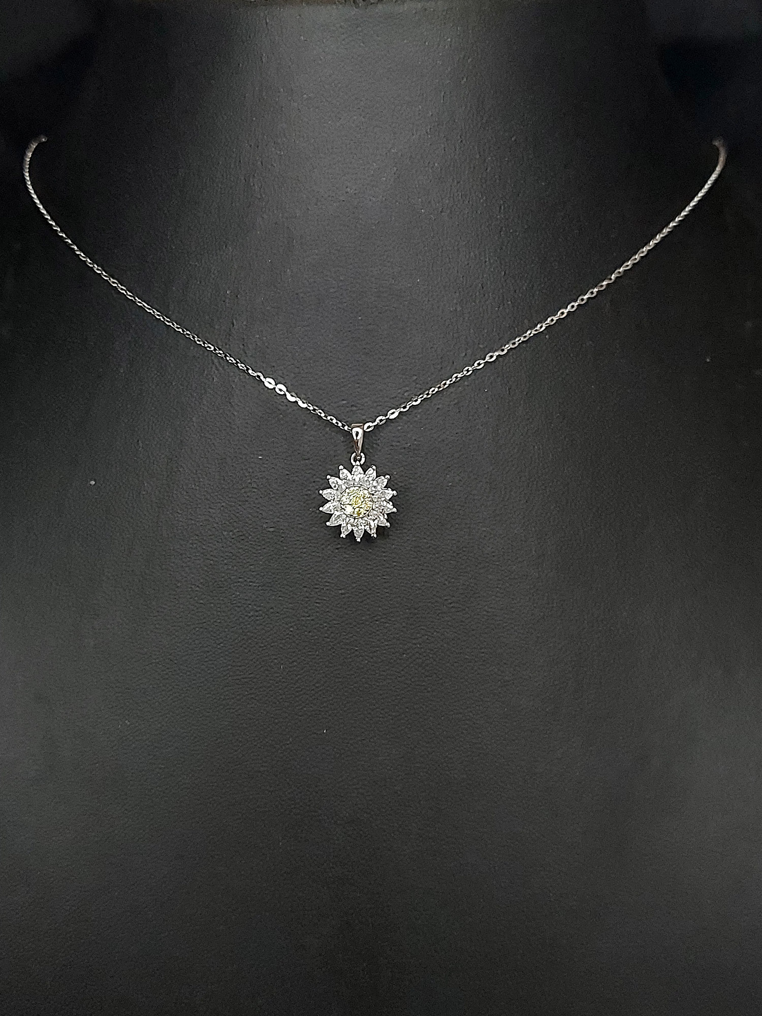 Silver rotating yellow stone necklace